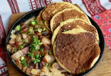 Деревенская мачанка с блинами на кефире в сковороде
