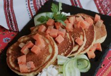 Блины на кефире с соленой форелью и мягким сыром